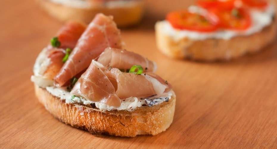 Crostini con mermelada de higos y prosciutto Ver más »