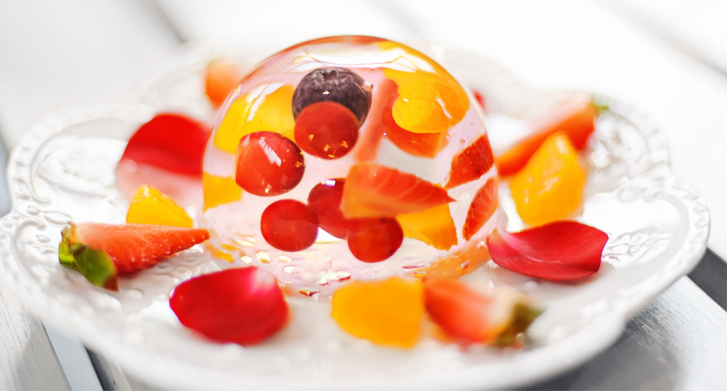 Gelatina de agua de coco con frutas tropicales Ver más »