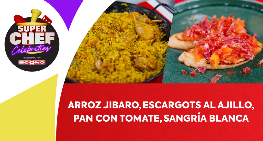 Arroz Jíbaro, Escargots al Ajillo, Pan con Tomate, Sangría Blanca Ver más »