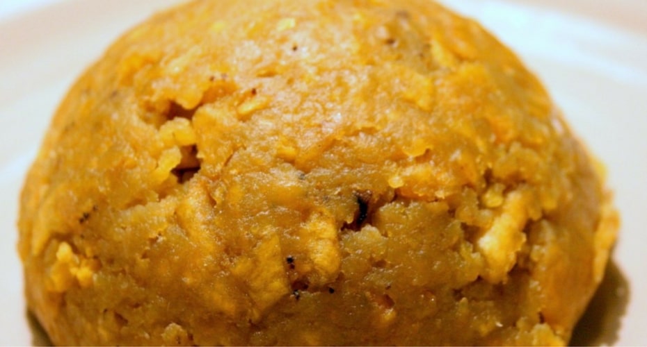 Pescado Entero Frito con Mojo Isleño, Mofongo de Viandas, Funche con Caldo de Pescado Ver más »