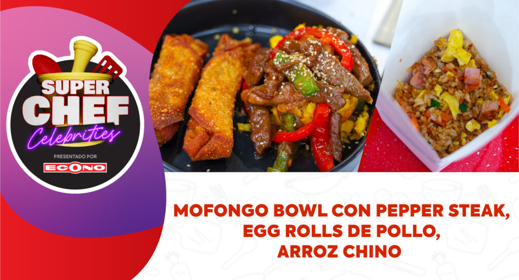 Mofongo Bowl don Pepper Steak, Egg Rolls de Pollo, Arroz Chino Ver más »