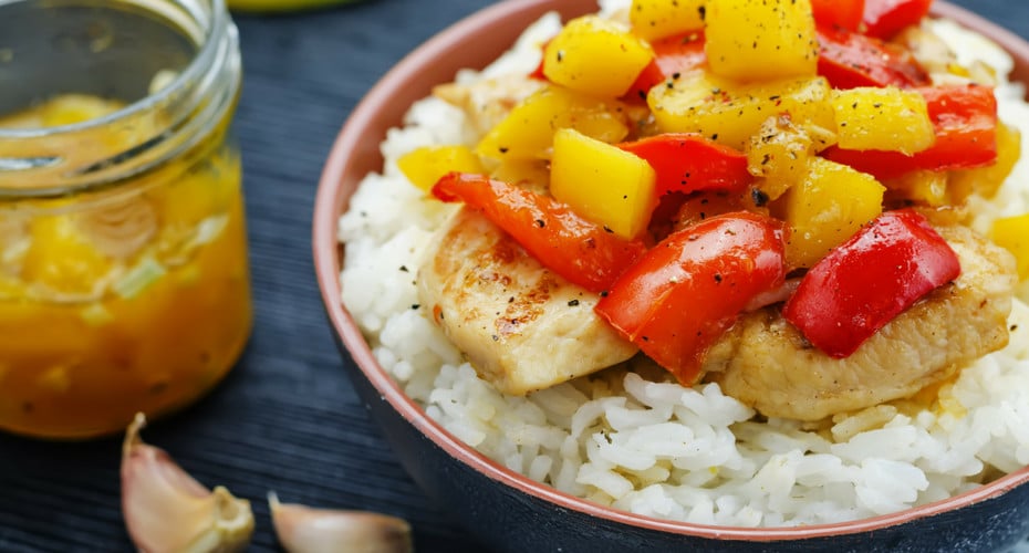 Pollo a la parrilla marinado con tomate y salsa de frutas Pollo a la parrilla marinado con tomate y salsa de frutas Ver más »