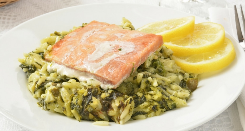 Pasta orzo en salsa de albahaca y ajo Ver más »