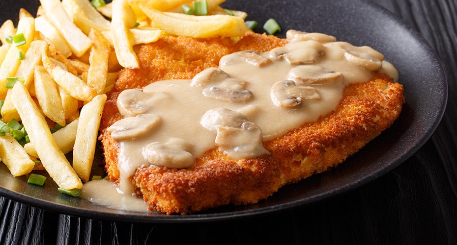 Chuletas empanadas en crema de setas Ver más »