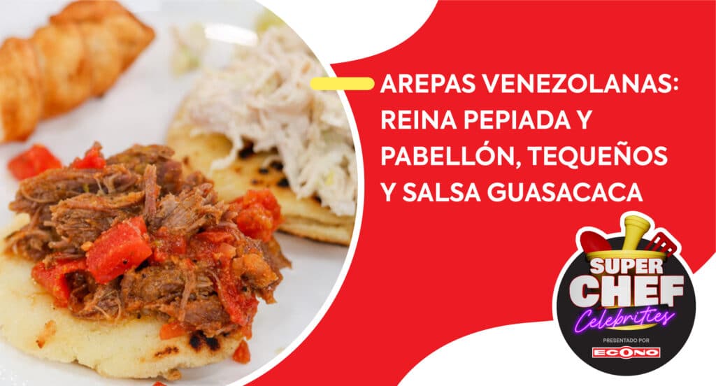 Arepas Venezolanas: Reina pepiada y Pabellón, Tequeños y Salsa guasacaca Ver más »