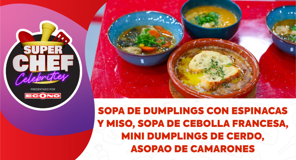 Sopa de Dumplings con Espinacas y Miso, Sopa de Cebolla Francesa, Mini Dumplings de Cerdo, Asopao de Camarones Super Chef Celebrities – Martes, 11 de Marzo Sopa de Dumplings con Espinacas y Miso, Sopa de Cebolla Francesa, Mini Dumplings de Cerdo, Asopao de Camarones Ver más »