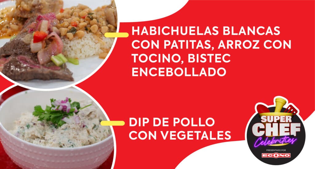 Dip de Pollo & Arroz con tocino, Habichuelas con patitas y Bistec encebollao Ver más »