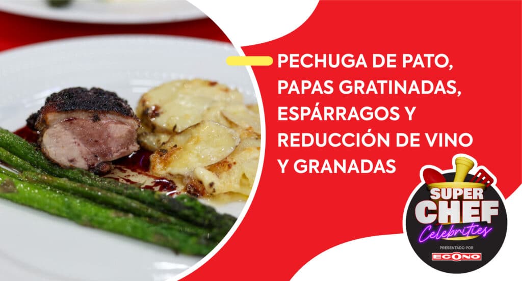 Pechuga de pato, papas gratinadas y espárragos Ver más »