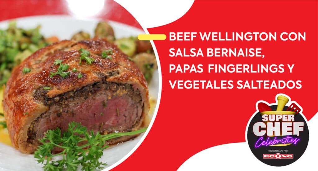 Beef wellington con salsa bernaise, Papas fingerlings y Vegetales salteados Ver más »