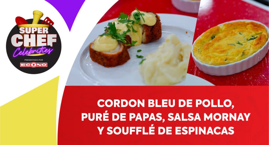 Puré de Papas Clásico, Cordon Bleu de Pollo, Soufflé de Espinacas y Salsa Mornay
