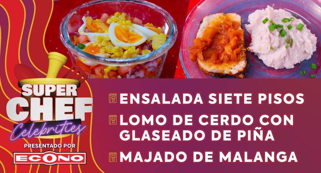 Ensalada Siete Pisos, Lomo de Cerdo con Glaseado de Piña y Majado de Malanga Ver más »