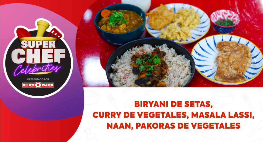 Biryani de Setas, Curry de Vegetales, Masala Lassi, Naan, Pakoras de Vegetales Ver más »