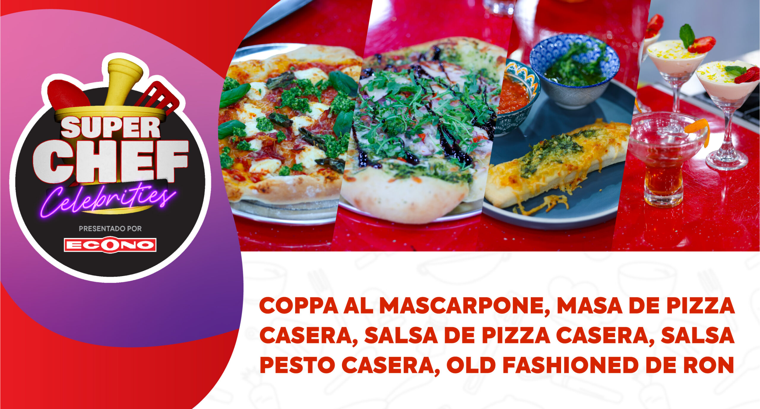 Coppa al Mascarpone, Masa de Pizza Casera, Salsa de Pizza Casera, Salsa Pesto Casera, Old Fashioned de Ron