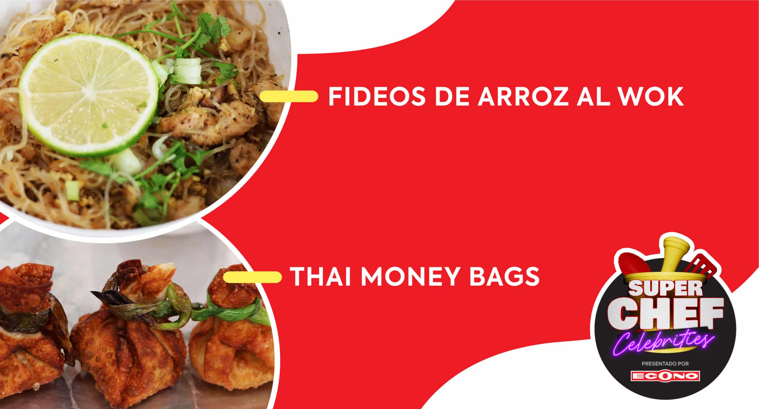 Fideos de Arroz al Wok & Thai Money Bags