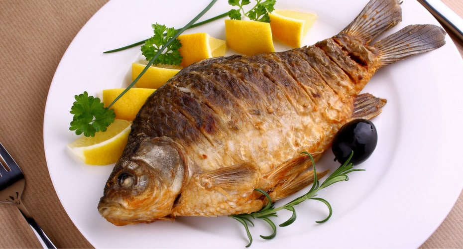 • Adoba el pescado con perejil y ajo. En una bandeja para hornear, acomoda la cebolla y los pimientos. Pon el pescado sobre ellos, vierte el vino blanco y la sal. Hornea a 350ºF hasta que el pescado dore. Cuando esté casi listo, échale el vinagre por encima y cocina por unos minutos más.