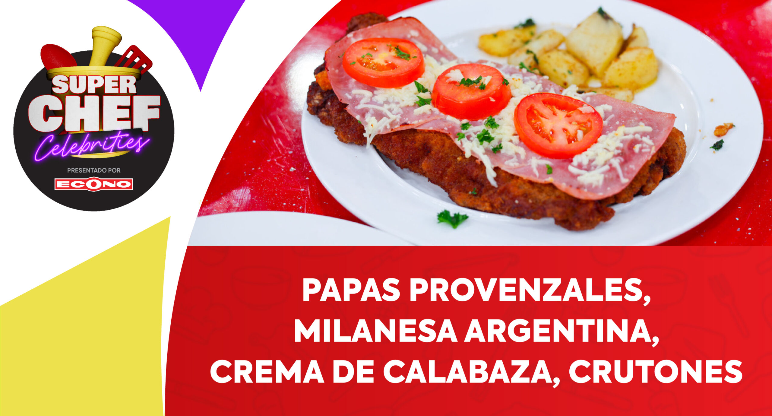 Papas Provenzales, Milanesa Argentina, Crutones, Crema de Calabaza