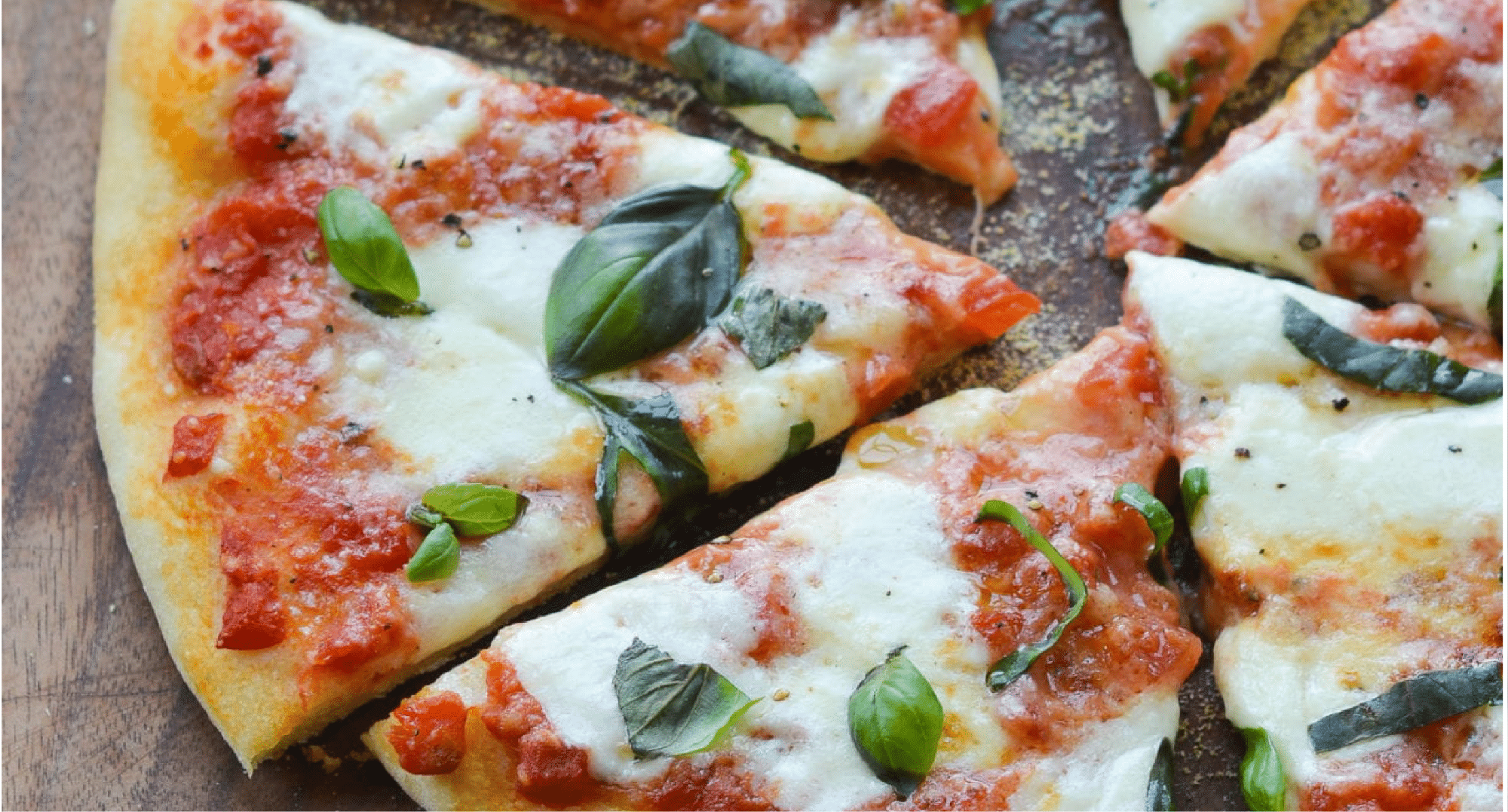 - Retira la pizza del horno y distribuye las hojas de albahaca fresca por encima. Rocía con un poco de aceite de oliva virgen extra, y sazona con sal y pimienta al gusto.