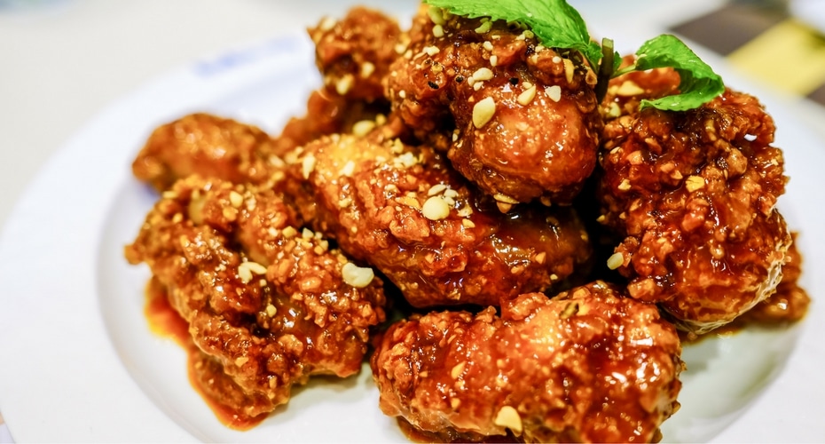- Sazona el pollo con el jengibre, la sal y la pimienta. Una vez sazonado, empana el pollo con la maicena. Fríe el pollo en aceite caliente hasta que dore. Una vez esté todo el pollo frito, échale la salsa hasta que quede bien cubierto y rocíale las semillas de ajonjolí para decorar.